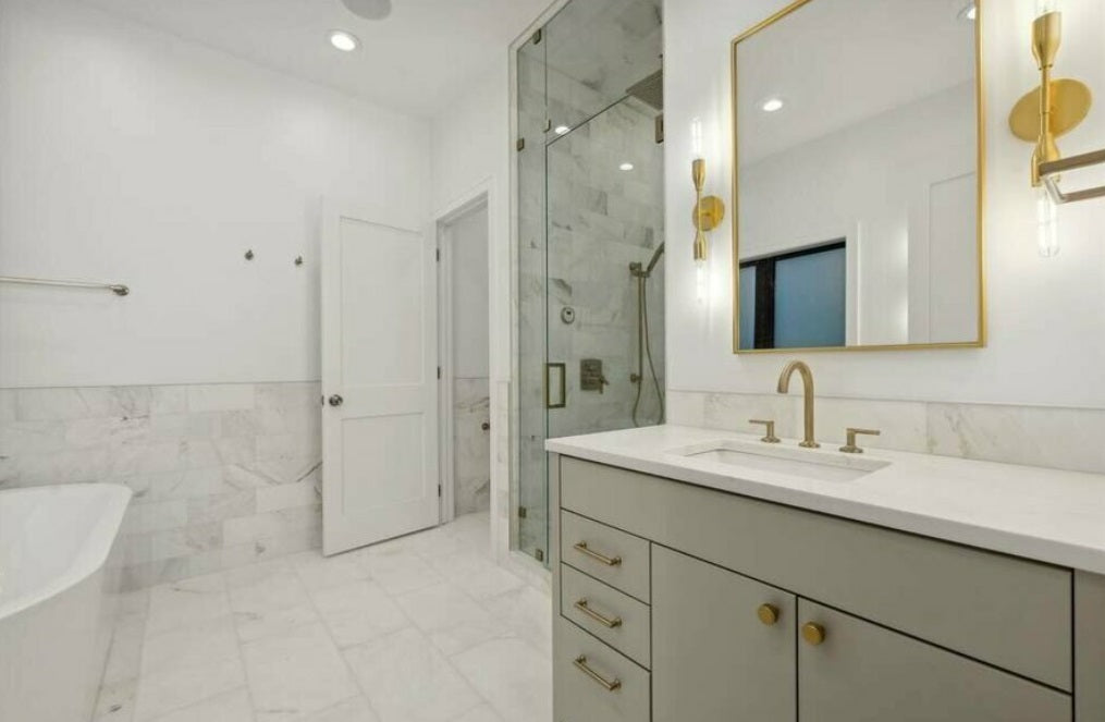 Meet Bianco Marea! A marble with warm and cool tones that looks gorgeous as a bathroom floor tile, shower wall tile, backsplash tile, or anything in between