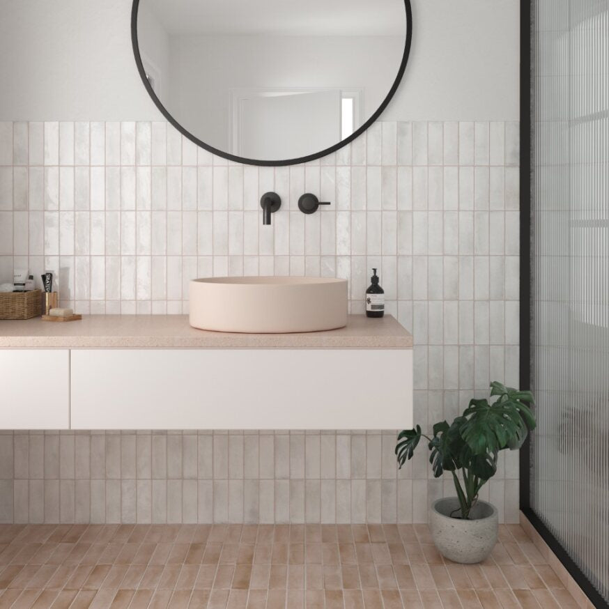 Meet Coco! A beautiful handmade porcelain tile that livens up any space as a floor tile or wall tile