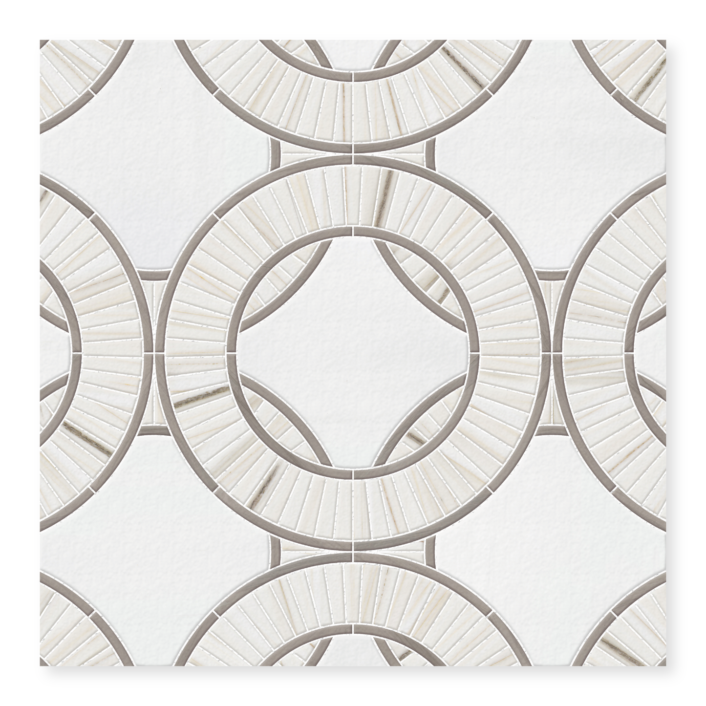 Meet Coliseum! A hand-cut marble mosaic whose geometric shape and intricate details makes for a striking and sophisticated floor tile or wall tile