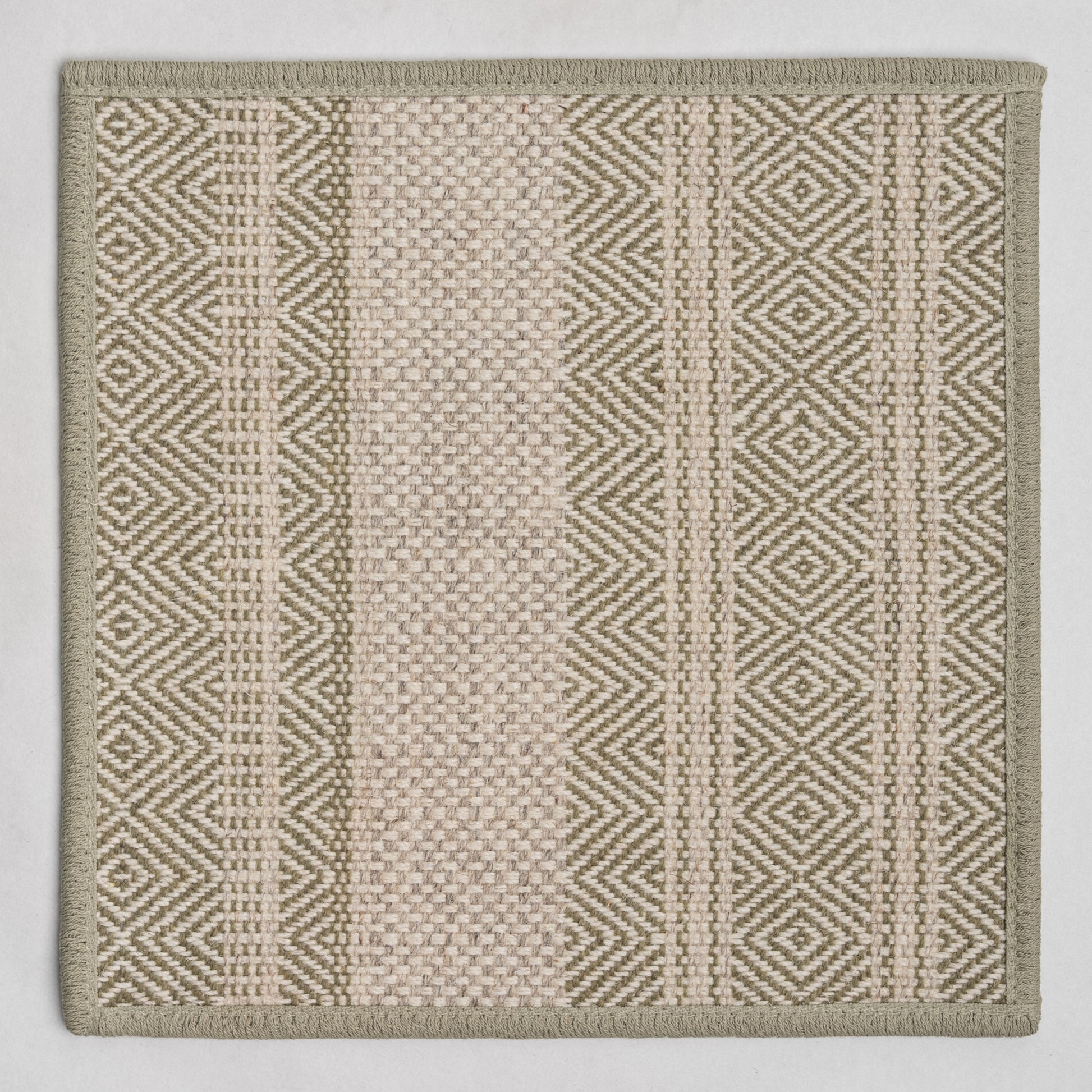 Meet Royal Palm! A hand-loomed wool carpet with an abstract diamond design perfect for a living room rug, stair runner, or hallway runner
