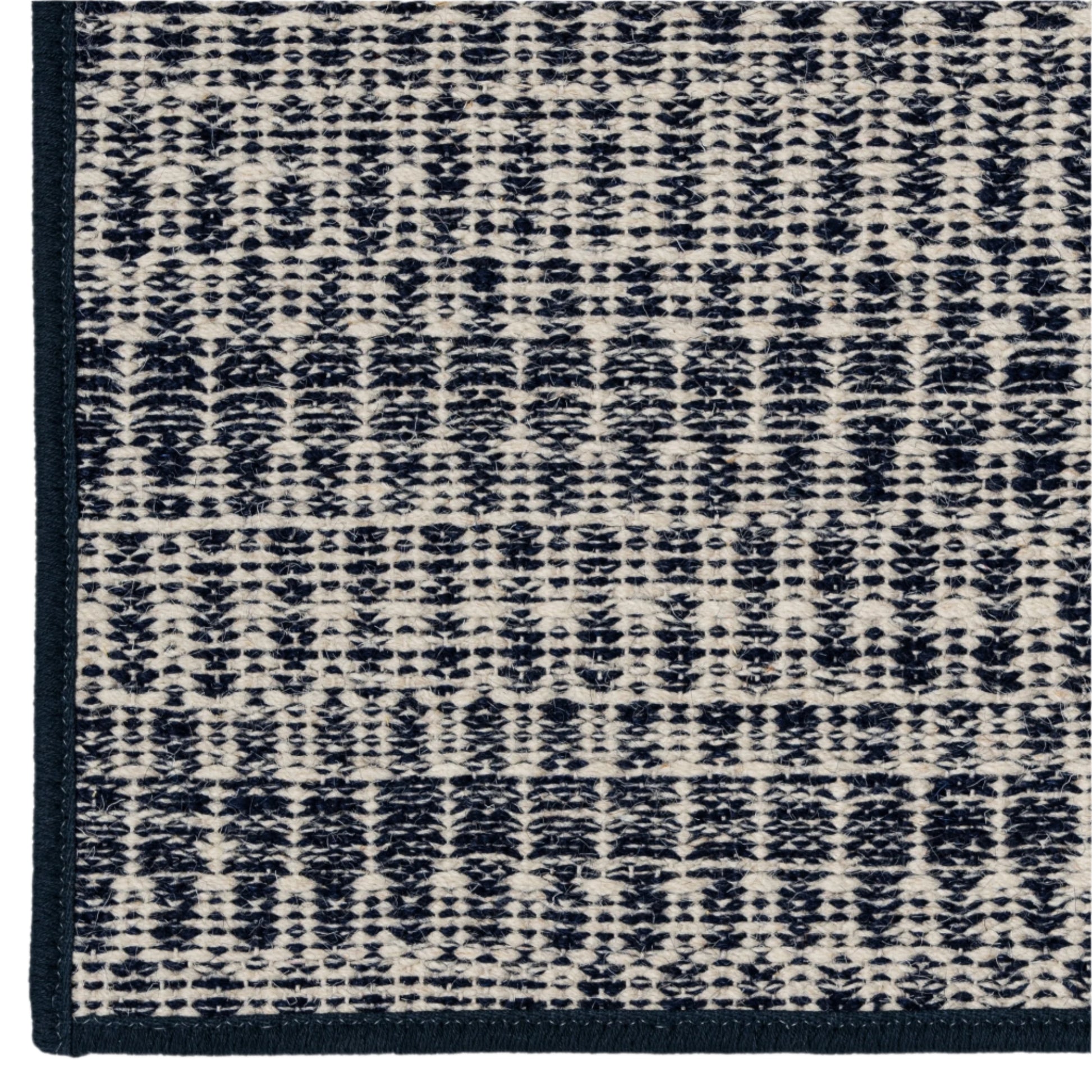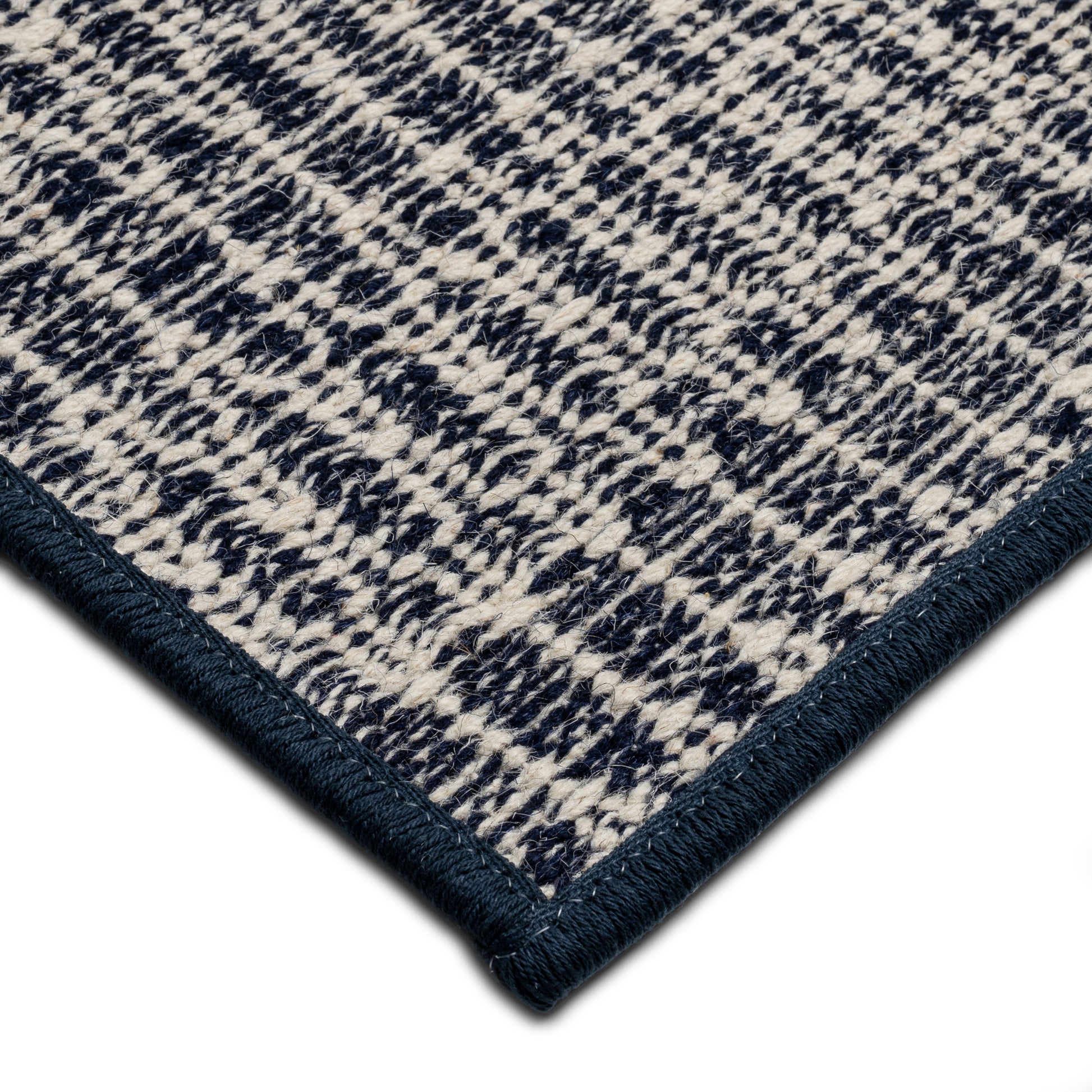 Looking for a different color, size, or type of edging? We can custom fabricate rugs in fabric, leather, cotton, or polyester with different sized borders and colors. Learn more about our serging and binding options here or contact us here or text us below