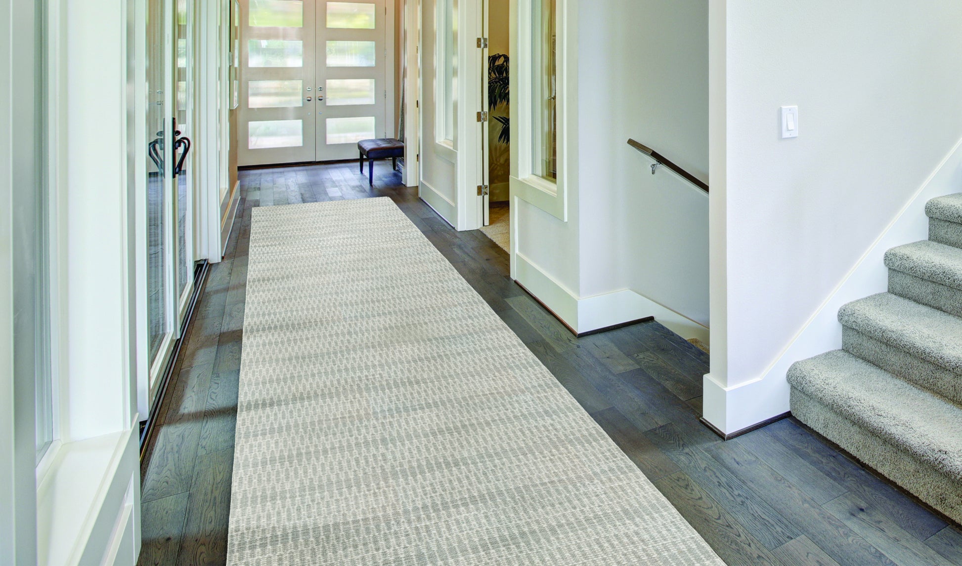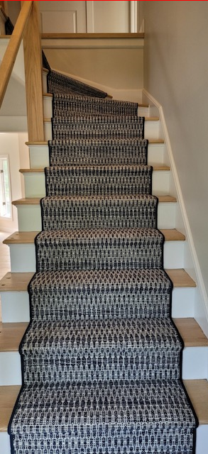 Meet Xanadu! A hand-loomed wool carpet with an abstract, geometric pattern that looks beautiful as a stair runner, hallway runner, living room rug, or family room rug